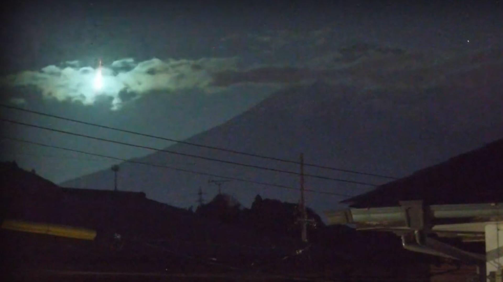 М етеор озари небето над планината Фуджи в Япония в ранните часове на петък, като зрелището беше уловено от видеонаблюдение на градския музей в Хирацука.
